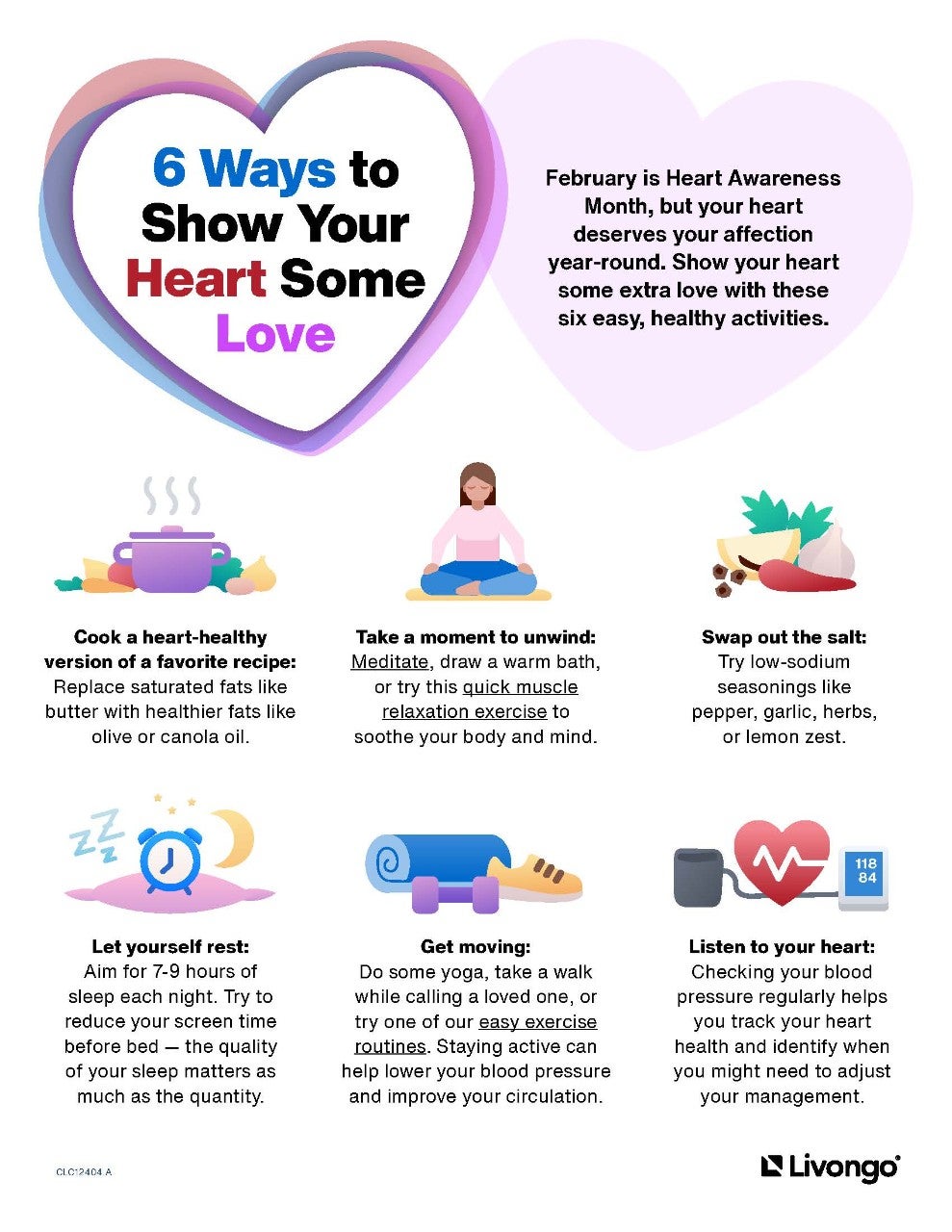 February is Heart Awareness Month, but your heart deserves your affection year-round. Show your heart some extra love with these six easy, healthy activities.